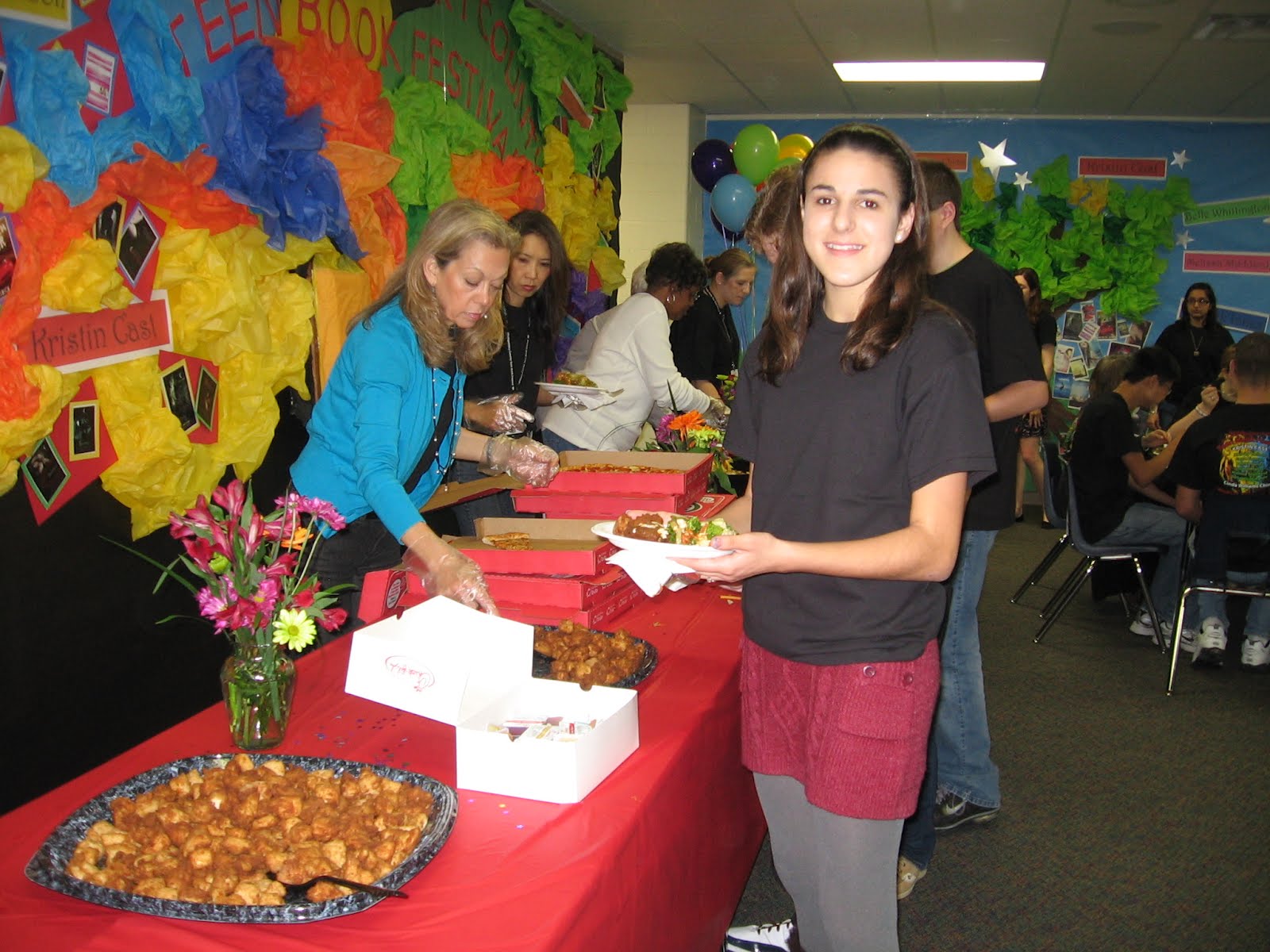Before the festival, the student volunteers get to have brunch with the authors. As you can imagine, that is a huge hit with the teens!